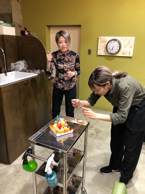 shizukaさんの提案でケーキを用意して、営業後にみんなで食べました!